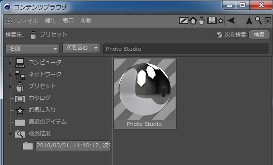 - 右上の検索ボタンから「Photo Studio」を検索。アイコンをダブルクリック(マテリアルマネージャに追加された)