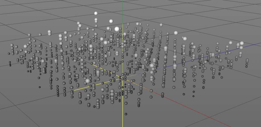 - ランダムエフェクタを適用(Sphere Gridを選択した状態で「MoGraph>エフェクタ>ランダム」)。